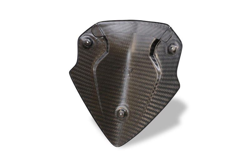 Cupolino in carbonio con trama plain e finitura opaca; prodotto in carbonio 100% lavorato in autoclave, sostituisce senza modifiche l'originale.