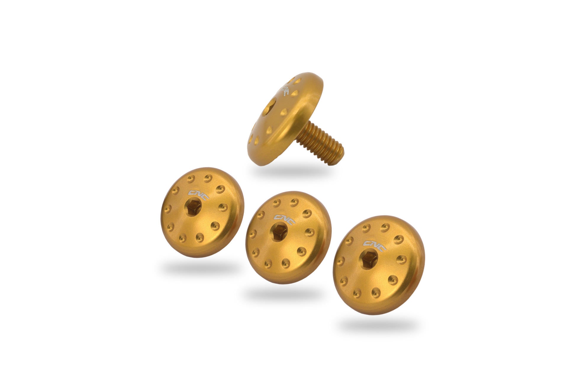 Kit viti cover radiatore della Multistrada V4 realizzate dal pieno in lega leggera con successivo trattamento di anodizzazione superficiale. Le viti sostituiscono le originali in ferro spesso arrugginite o ossidate.