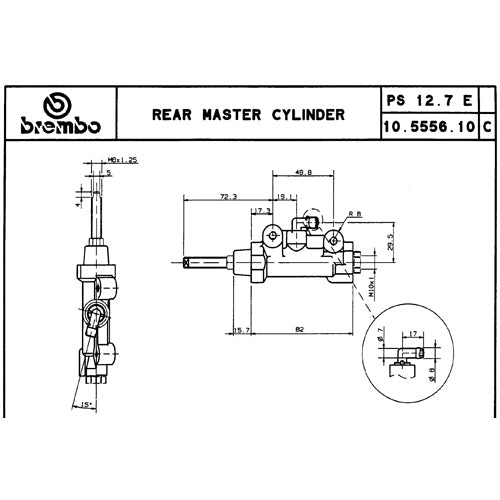 Pompa freno Brembo PS 12,7 E nera interasse 48,8 mm, progettata per garantire precisione e prestazioni superiori nella frenata. Caratteristiche principali: