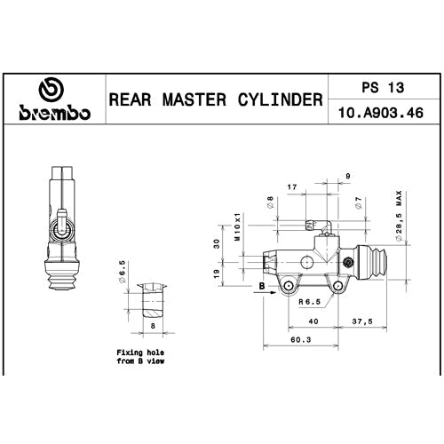 Pompa freno Brembo PS 13 titanio interasse 40 mm, progettata per offrire alte prestazioni e precisione, dotata di: