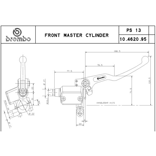 Pompa freno Brembo PS 13 nera con serbatoio, progettata per garantire una frenata precisa e affidabile. Il corpo nero e la leva nera offrono un design minimalista e robusto, mentre il pistone da 13 mm assicura prestazioni costanti. Ideale per motociclette di piccola e media cilindrata, è una soluzione di qualità per ottimizzare il sistema frenante.