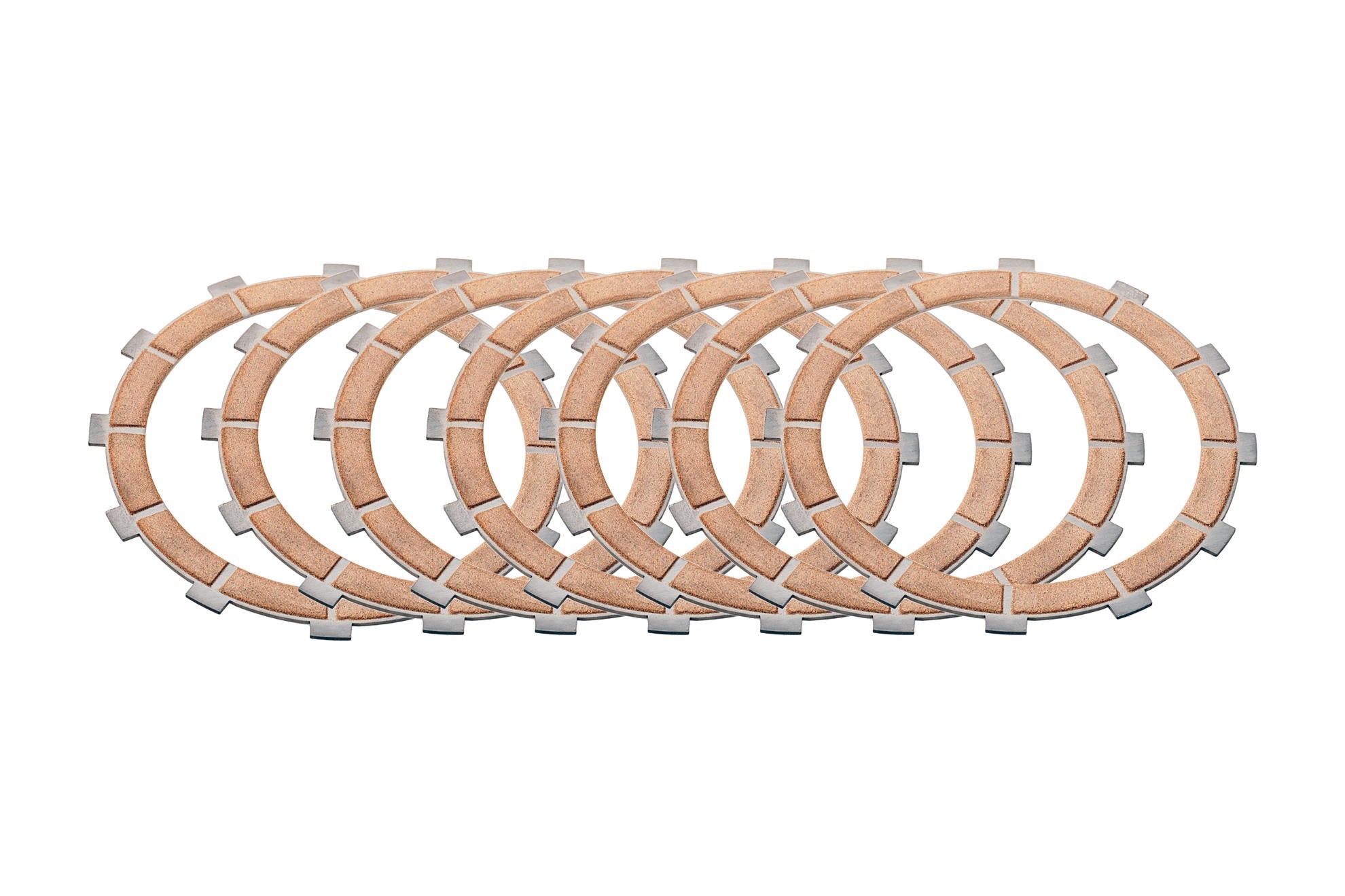 8 dischi conduttori in acciaio, spessore mm 2,5 e nr. 12 denti, con materiale d'attrito sinterizzato