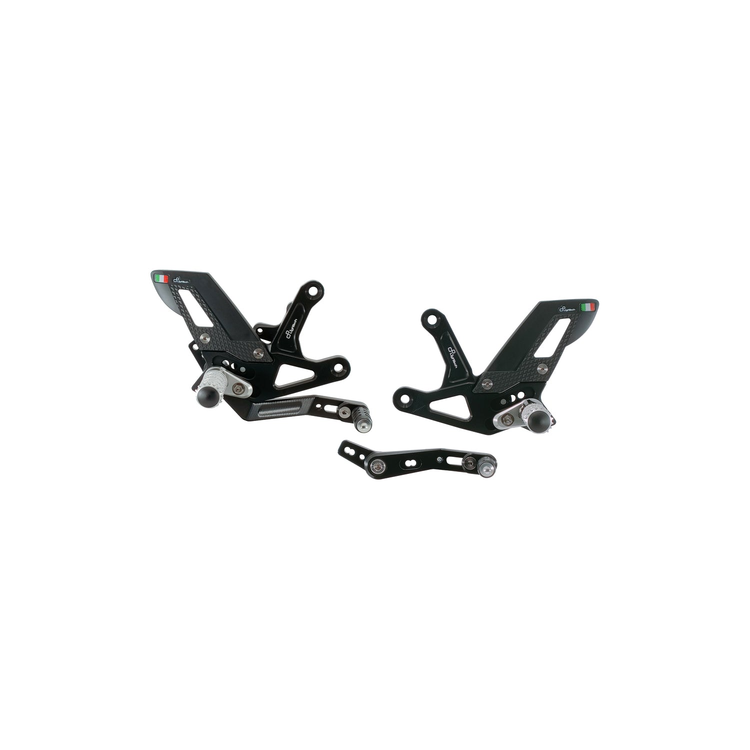 [FTRTR006] Pedane Regolabili con poggiapiedi fisso Lightech: viteria di precisione per uso stradale e pista.