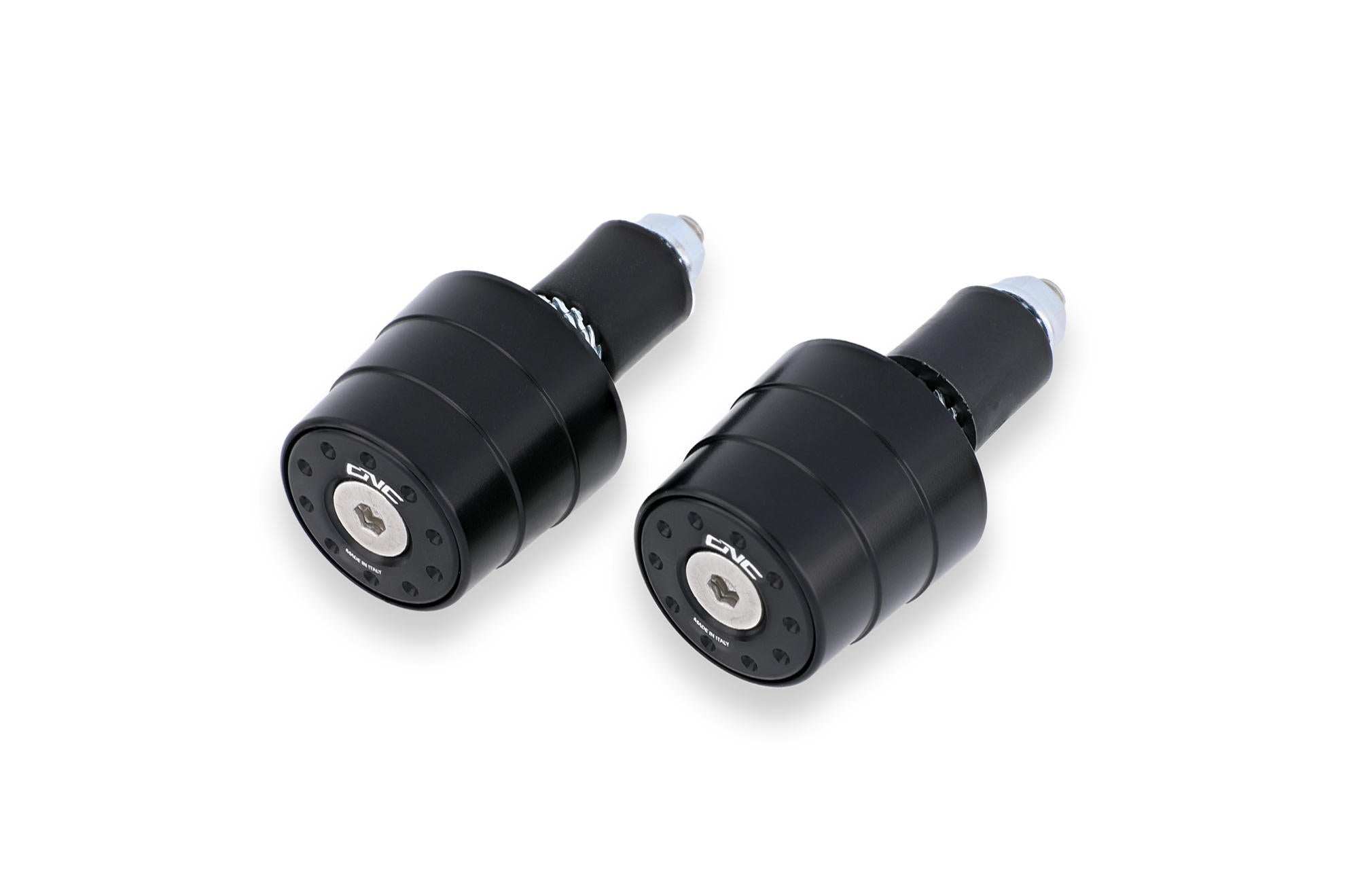 Contrappesi manubrio realizzati dal pieno in lega leggera tramite macchine CNC e successiva anodizzazione superficiale. Il kit è composto da due contrappesi che donano un estetica accattivante e racing, eliminando gli originali in plastica o ferro.