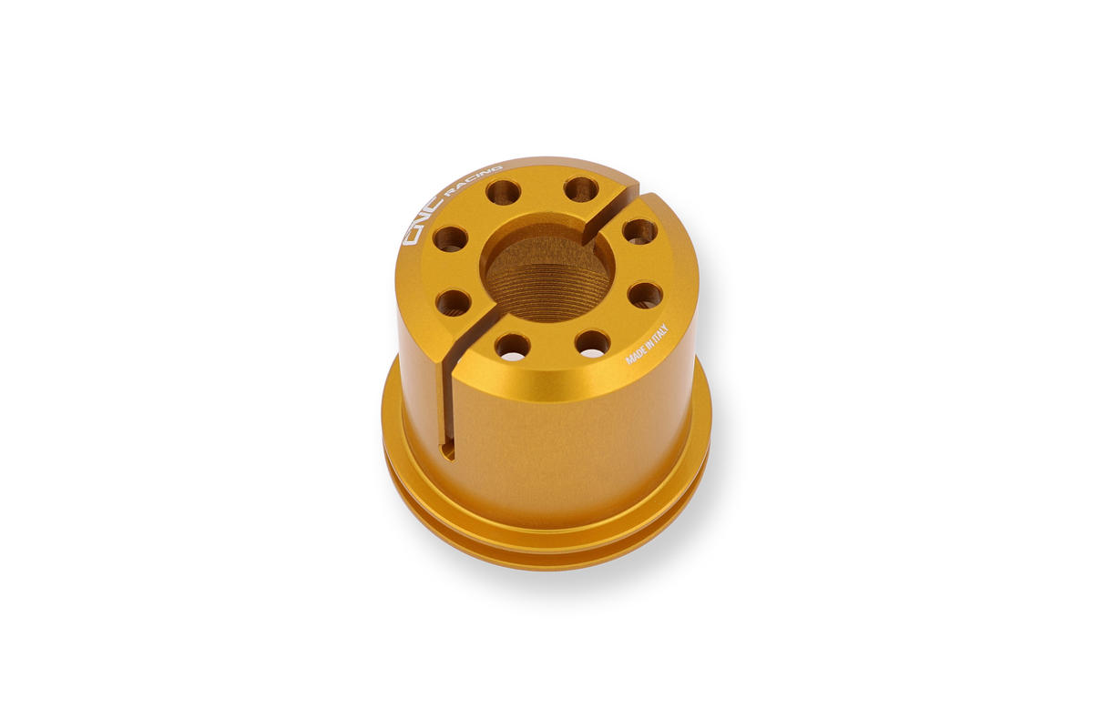 Ghiera di sterzo lavorata dal pieno in lega leggera con successiva anodizzazione superficiale.