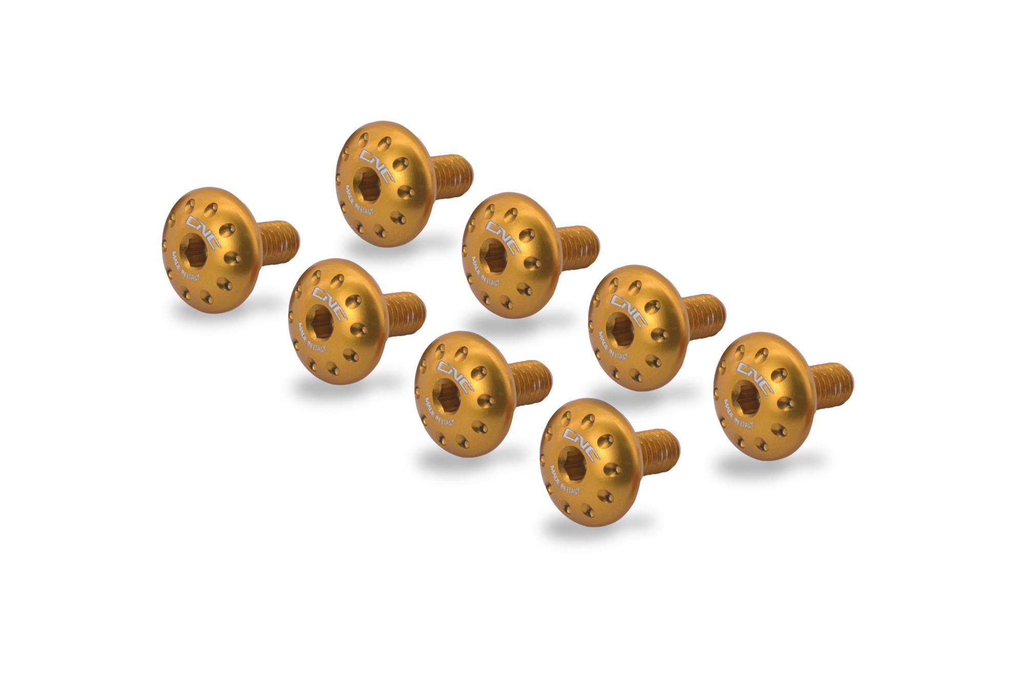 Kit viti parafango anteriore realizzate dal pieno in lega leggera con successivo trattamento di anodizzazione superficiale. Le viti sostituiscono le originali in ferro spesso arrugginite o ossidate.