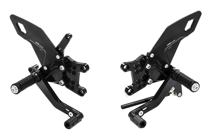 Materie prime di qualità, robustezza e componenti di montaggio specifici per un utilizzo estremo caratterizzano le nuove pedane per Aprilia RSV4/Tuono.