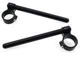 Semimanubri ricavati dal pieno da barre di Ergal 7075 con successivo trattamento di anodizzazione superficiale. Permettono una inclinazione di 6,5°, un rialzo di 15 mm, e sono disponibili con lunghezza dei tubi di 270 mm. Il kit di semimanubri è dotato di viteria alleggerita in acciaio inox, kit tubi con tappi in entrambi i fori e contrappesi. Il kit è composto da due bracciali semimanubrio.