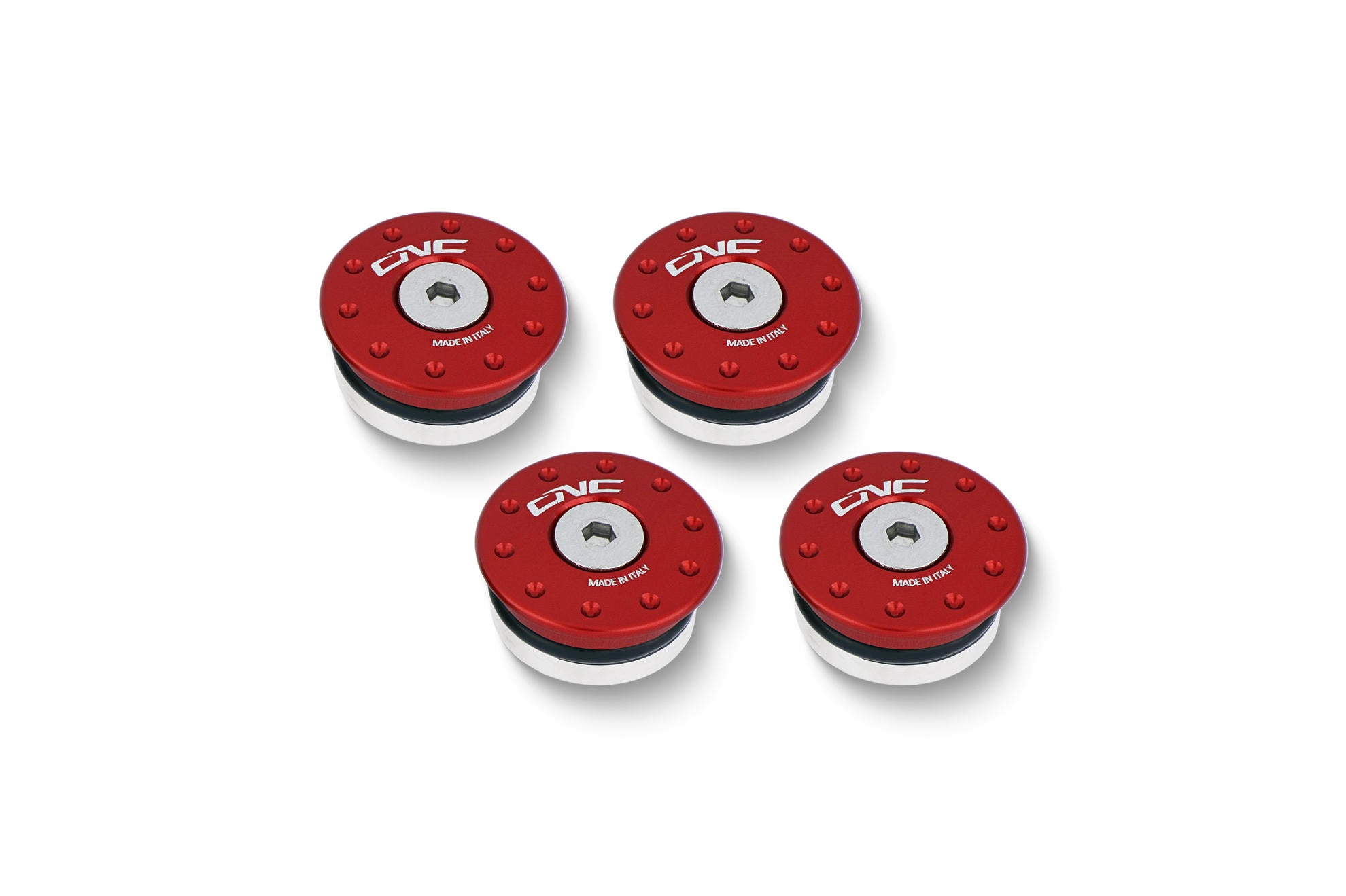 Tappi telaio realizzati dal pieno in lega leggera con successiva anodizzazione superficiale. Il kit è composto da 4 tappi ognuno nelle misure precise per adattarsi ai vari fori del telaio.